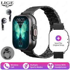 LIGE New 2 In 1 TWS Smart Watch With Earbuds Heart Rate NFC Bluetooth Call Music Play Sports Fitness Earphone Smartwatch Men